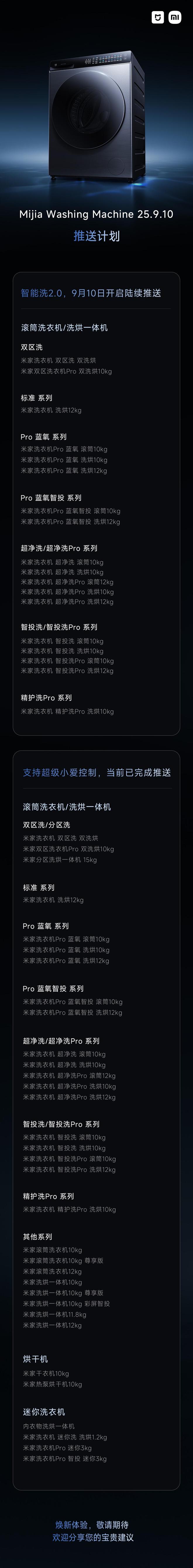 IT之家 9 月 11 日消息,小米智能生态宣布,米家洗衣机本月全链路 OTA 升级今日起陆续推送,版本号为 Mijia Washing Machine 25.9.10。